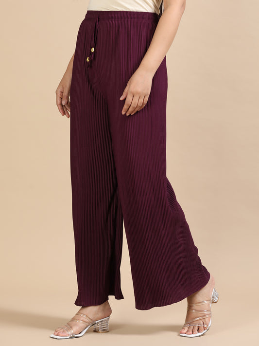 Wine Pleated Palazzo Pants