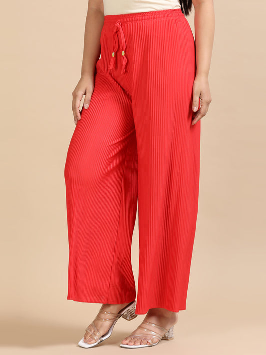 Red Solid Pleated Wide-Leg Palazzo Pants