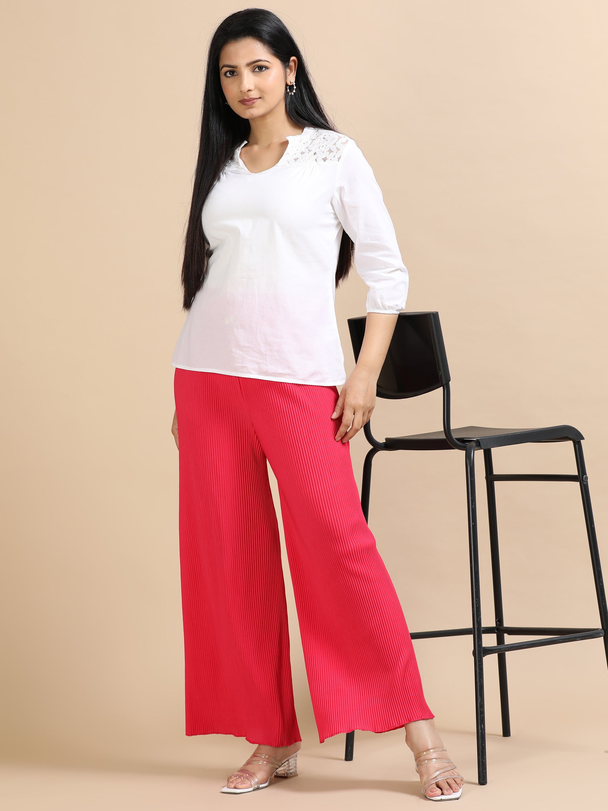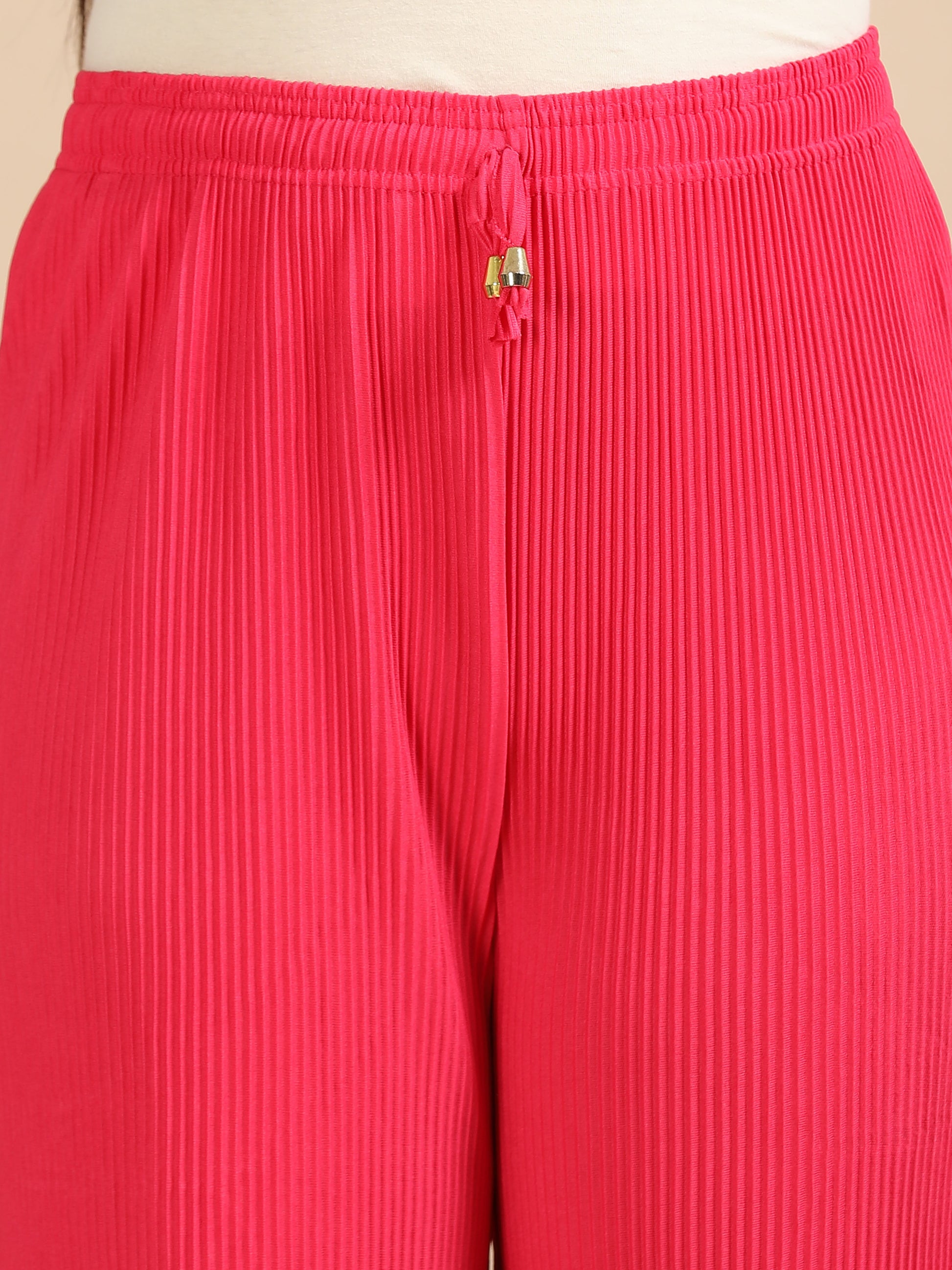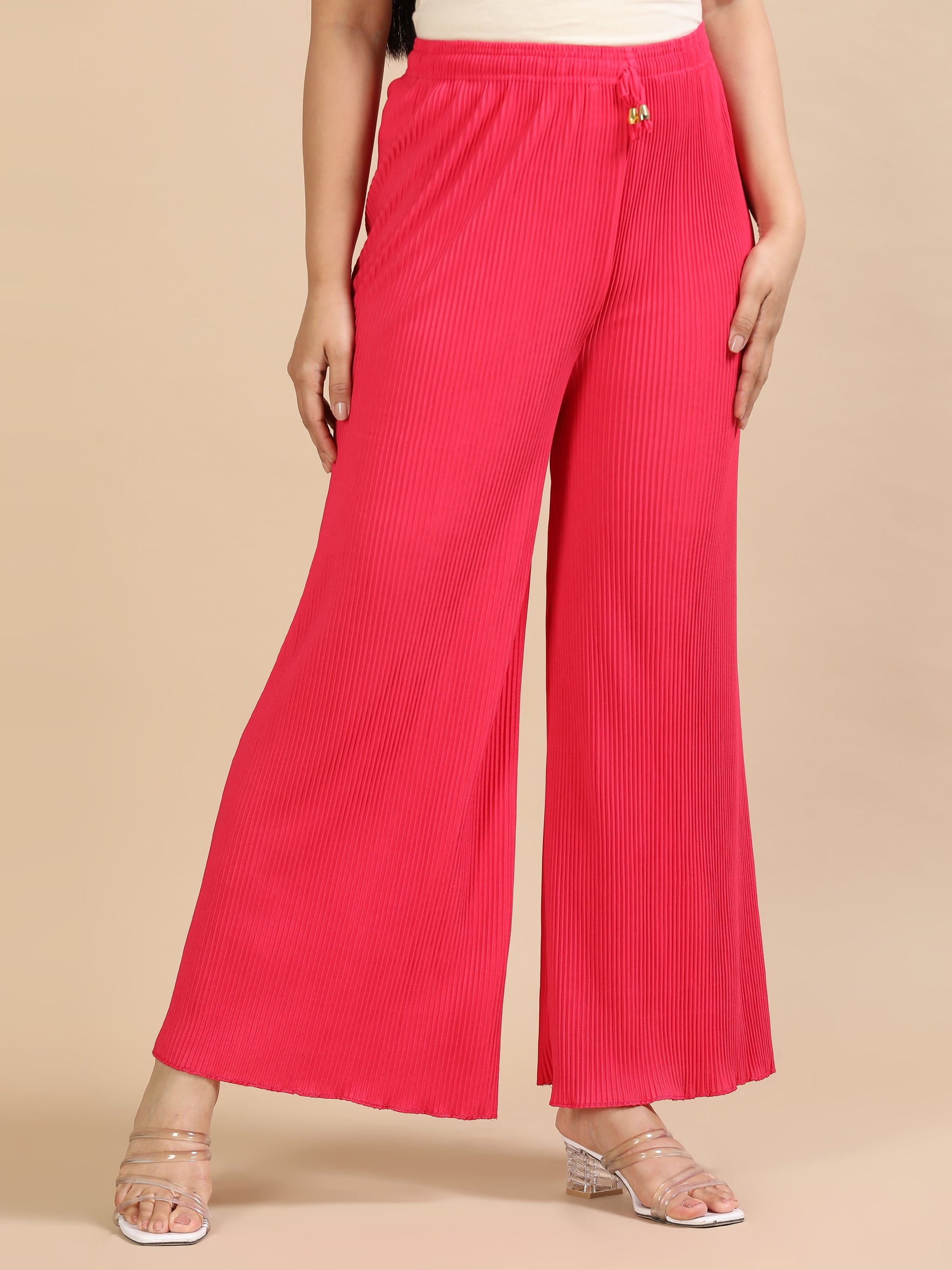 Upgrade your wardrobe with these stylish palazzo pants designed for everyday comfort and versatile styling. Made with soft and breathable fabric, these pants feature a wide-leg design and elasticated waistband with drawstring for a perfect fit. Easy to pair with kurtis, tops, or tunics, they are ideal for casual wear, office wear, or festive occasions. A must-have addition to your ethnic and fusion collection.