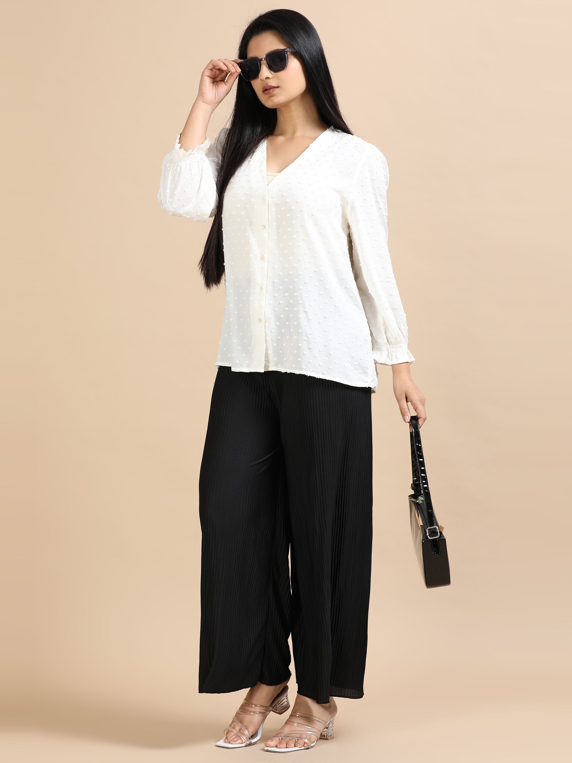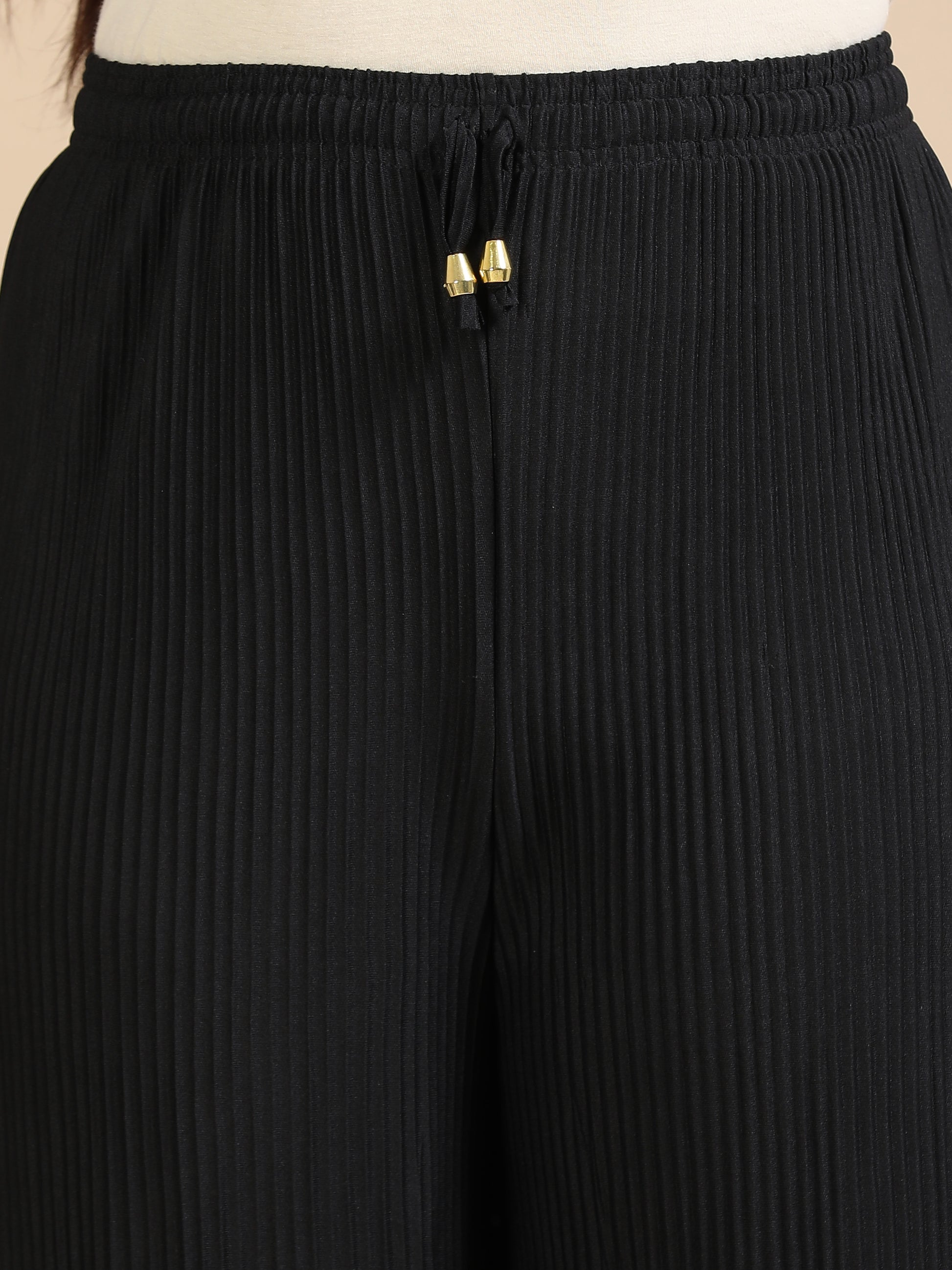 Upgrade your wardrobe with these stylish palazzo pants designed for everyday comfort and versatile styling. Made with soft and breathable fabric, these pants feature a wide-leg design and elasticated waistband with drawstring for a perfect fit. Easy to pair with kurtis, tops, or tunics, they are ideal for casual wear, office wear, or festive occasions. A must-have addition to your ethnic and fusion collection.