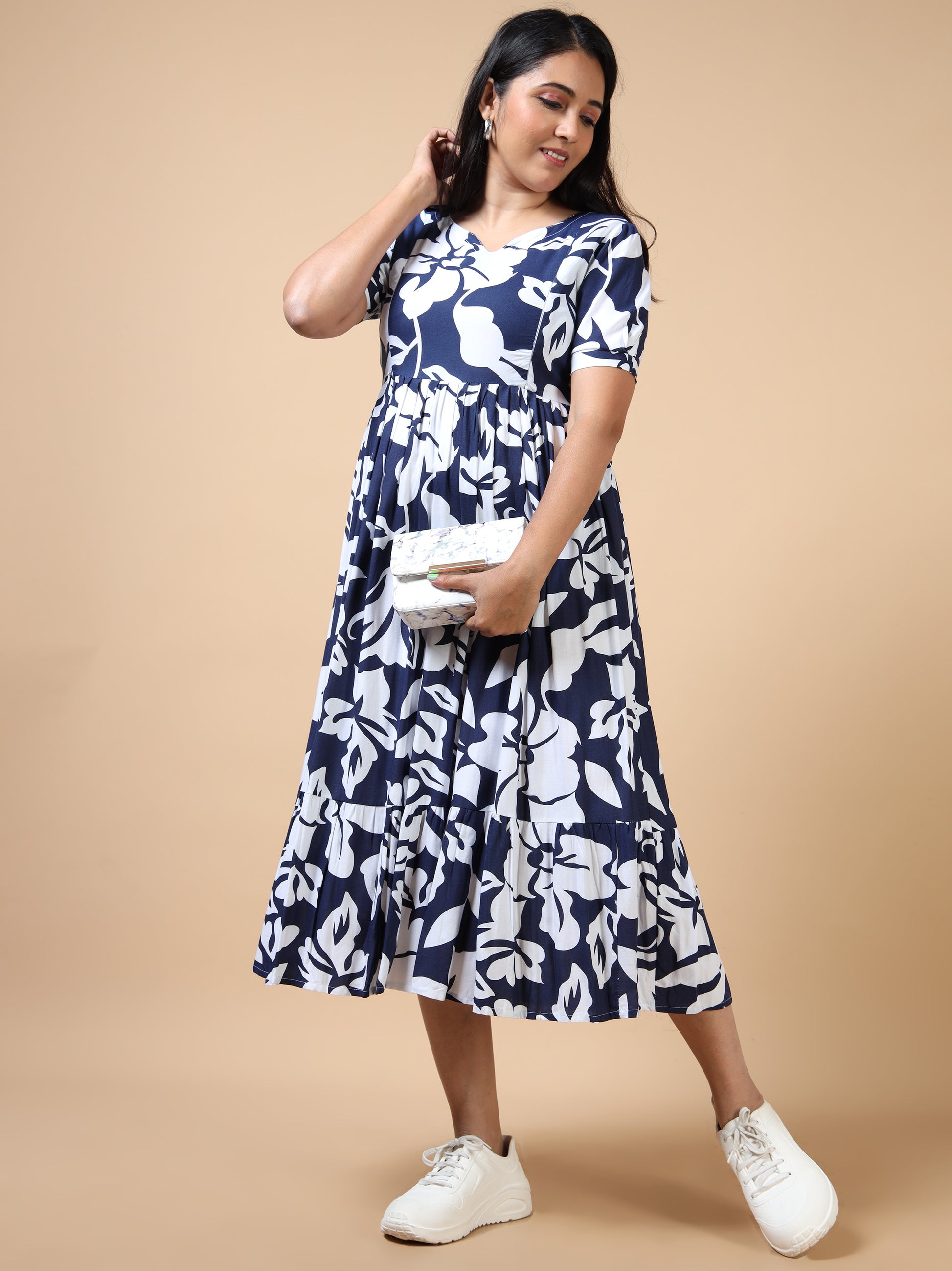 Crafted from soft, breathable fabric, this maternity dress offers a relaxed fit that adapts to your changing body, ensuring all-day comfort during pregnancy and motherhood. The modern black and white print adds a chic touch, making it perfect for daily wear, outings, and casual gatherings.