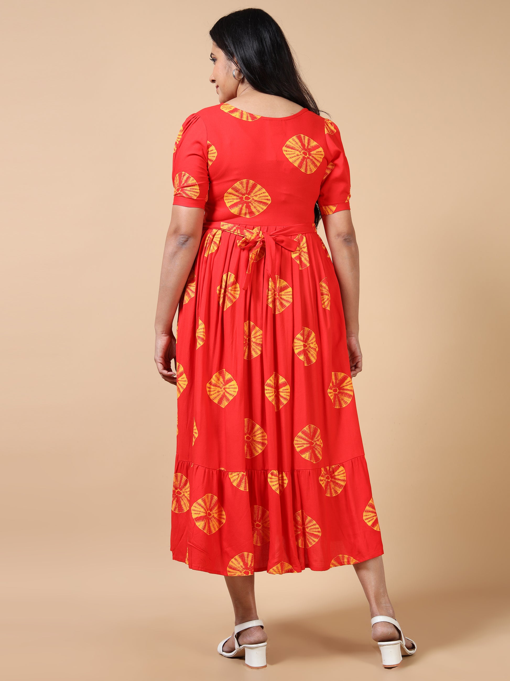 Feeding Red with Yellow Circle Print Floral Maternity Kurti