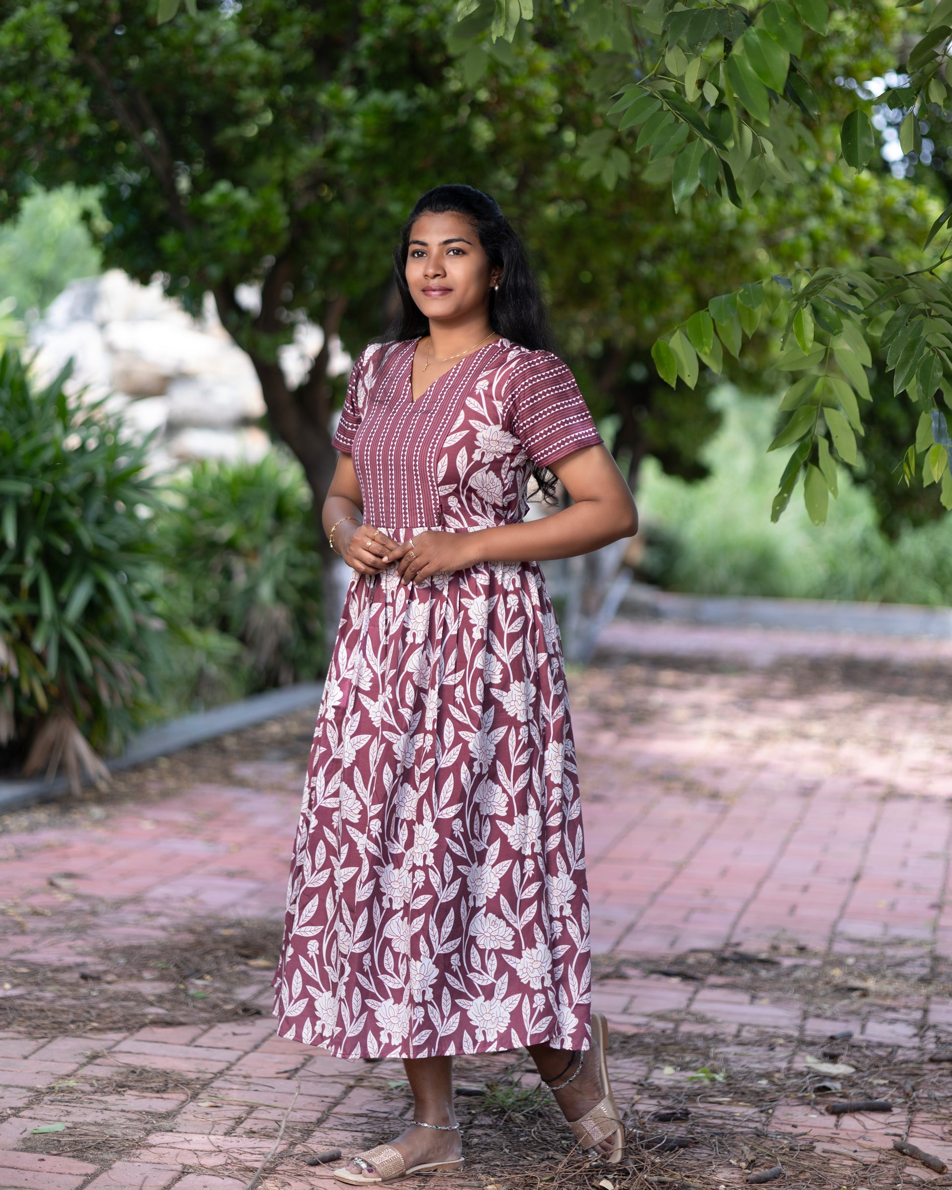 Feeding Women's Maxi Nighty – Full-Length Nightwear-Maroon