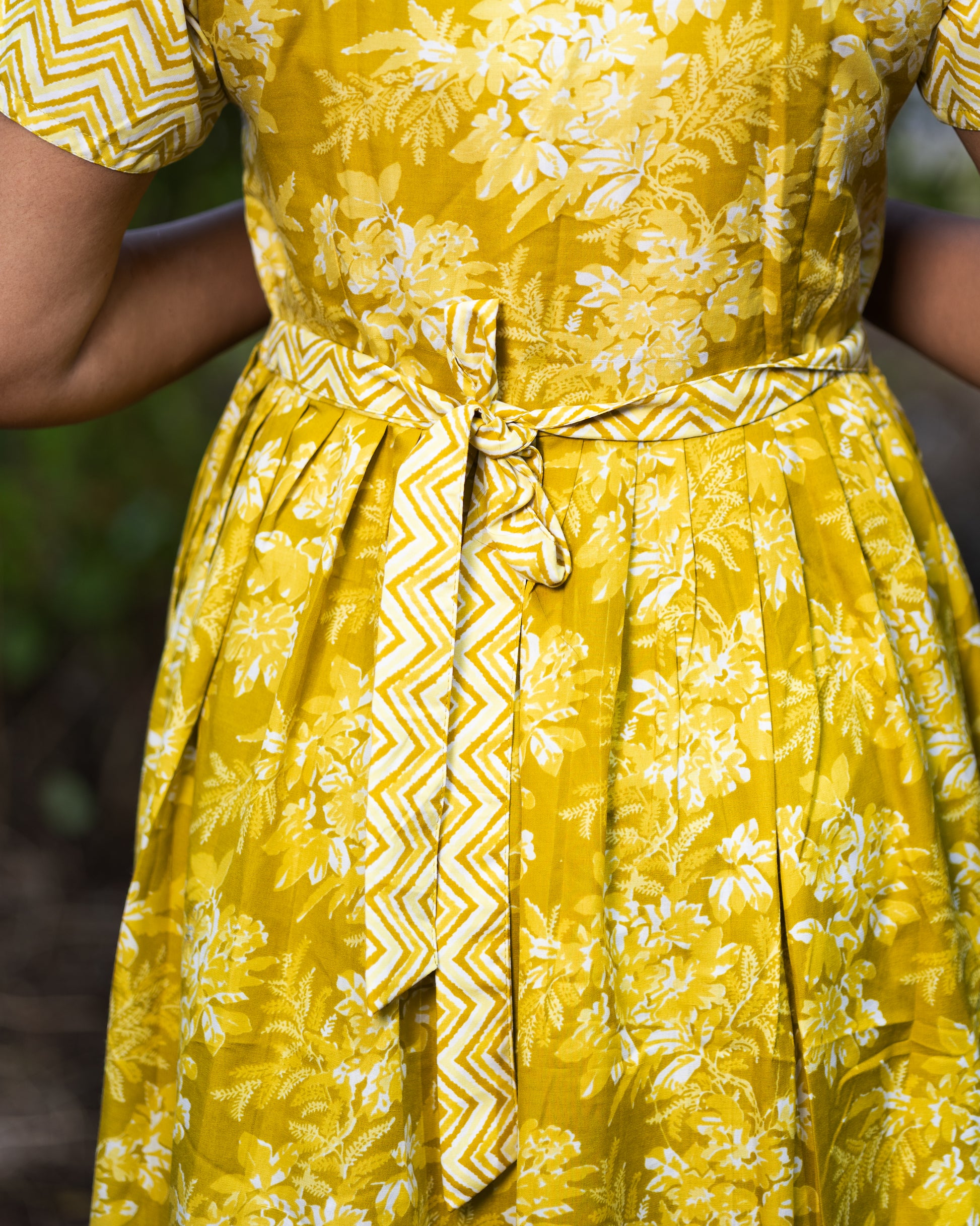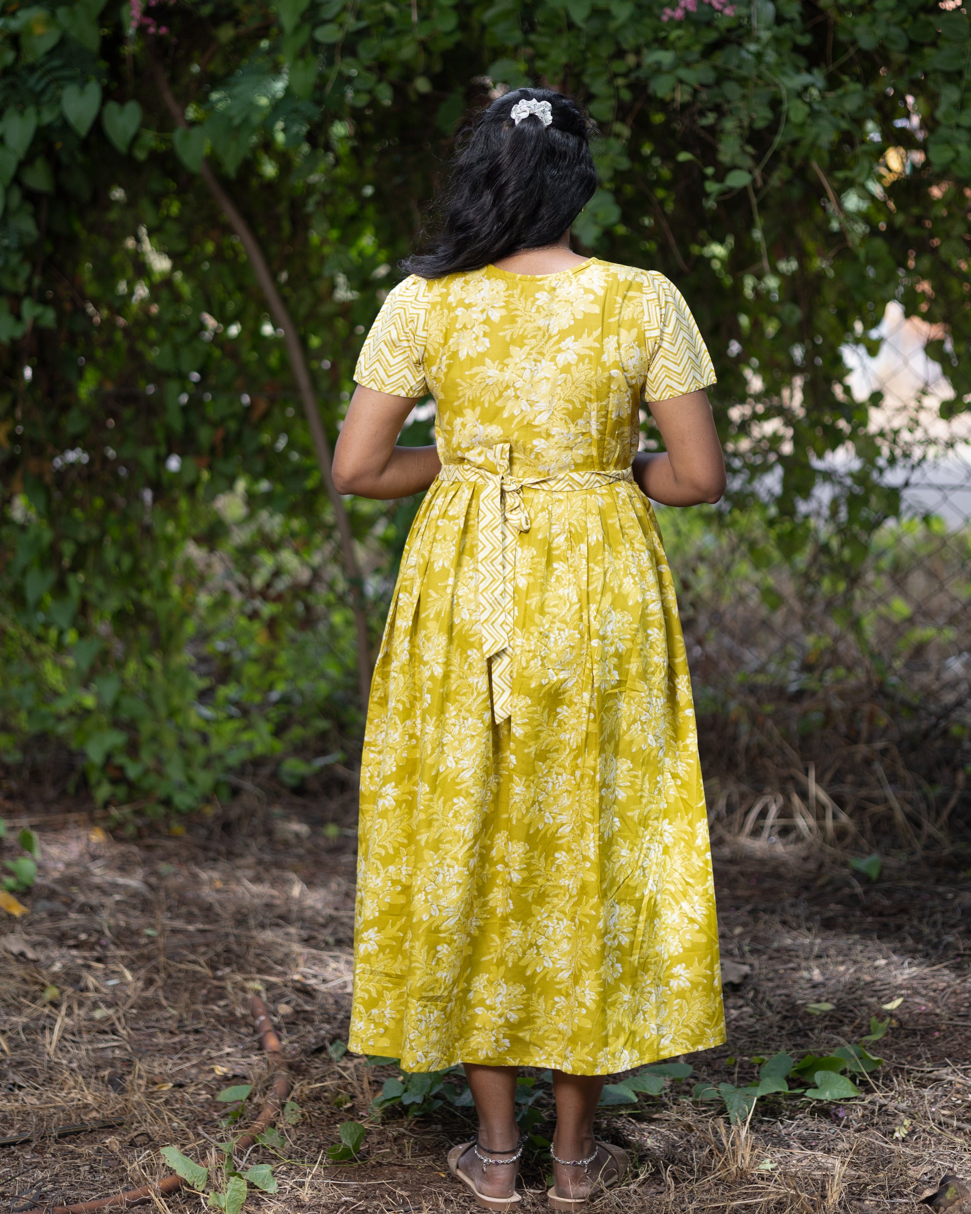 Feeding Women's Maxi Nighty – Full-Length Nightwear-Mustard Yellow with White Floral