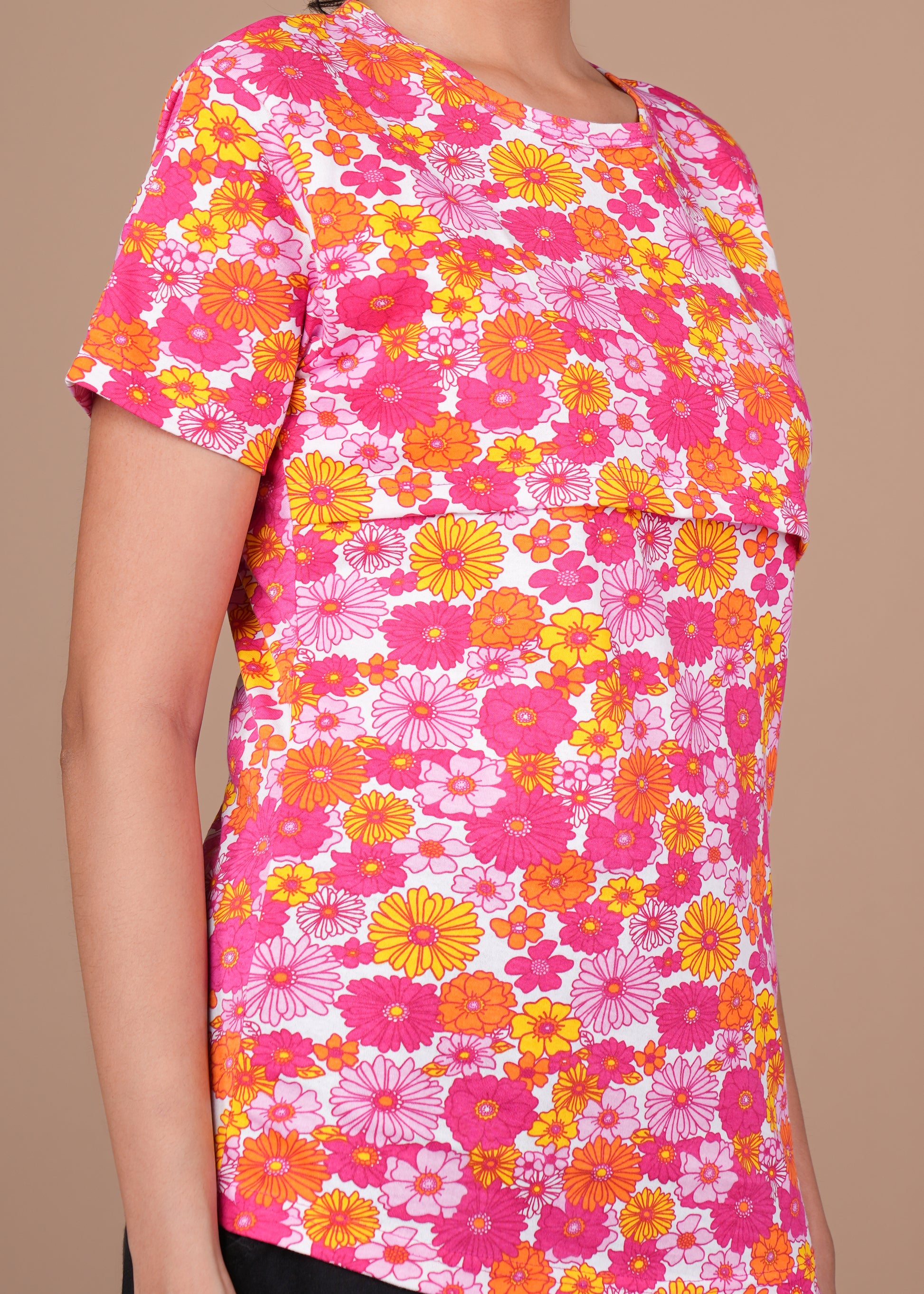 Women’s Zipless Feeding Top-Pink with Multicolor Floral Print